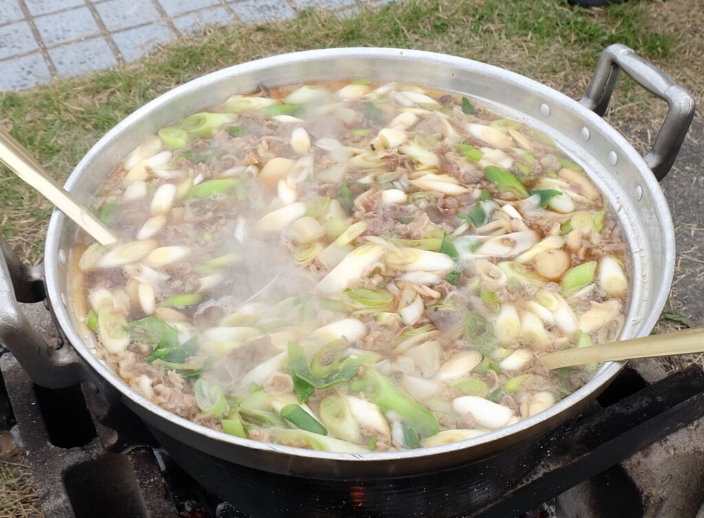 芋煮のあとは、芋煮のだしを使ったカレーうどんを作り大好評!