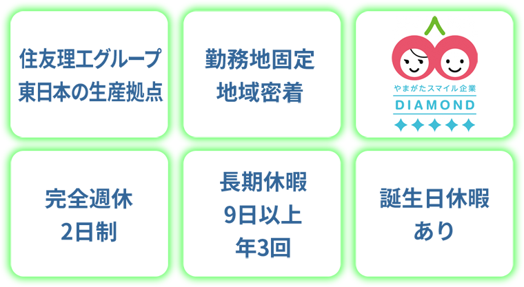 | 勤務地 | 山形県米沢市八幡原3丁目4452番地33(八幡原工業団地内) |